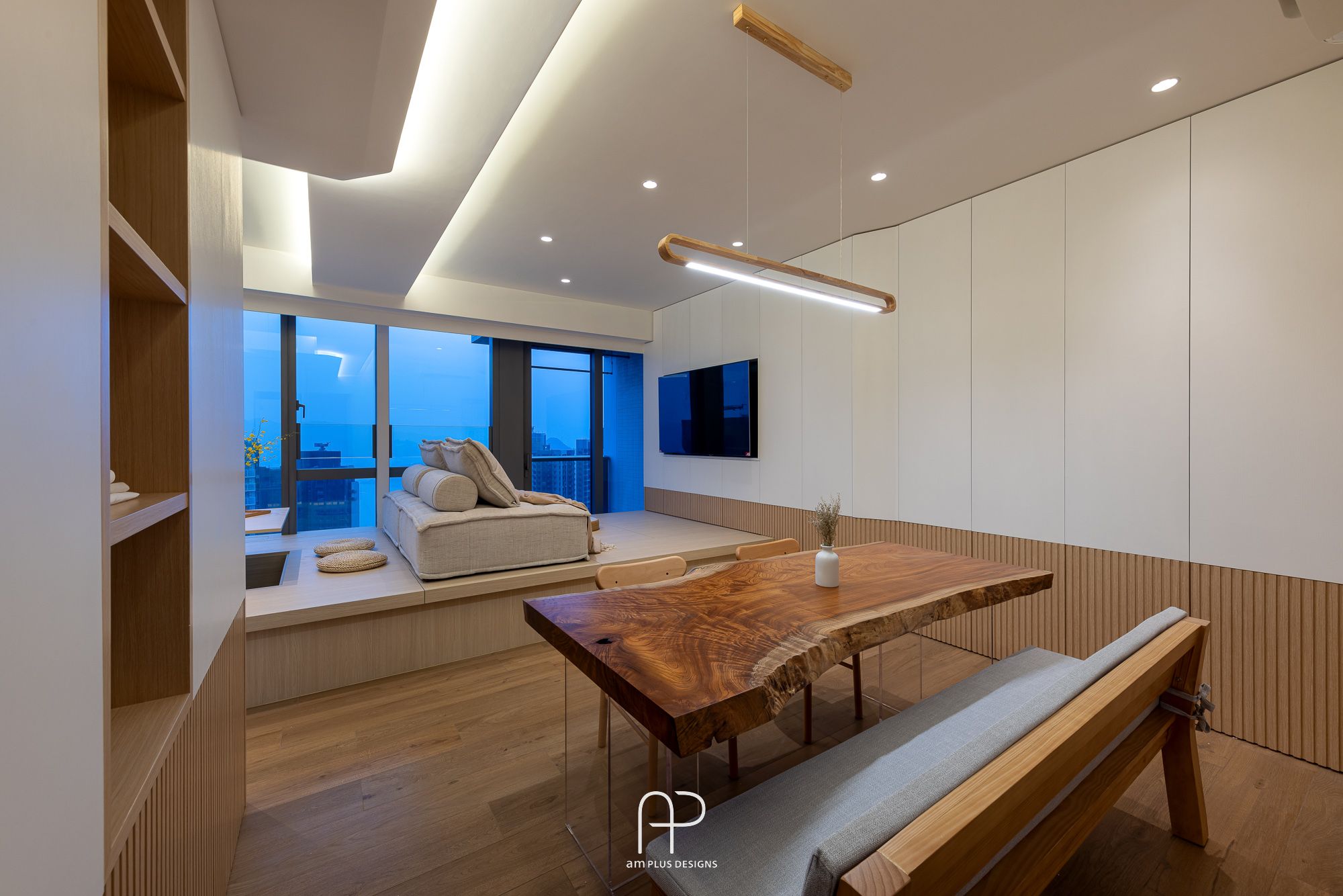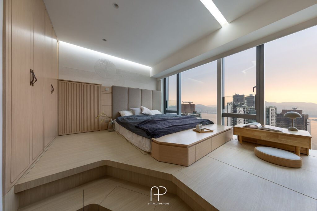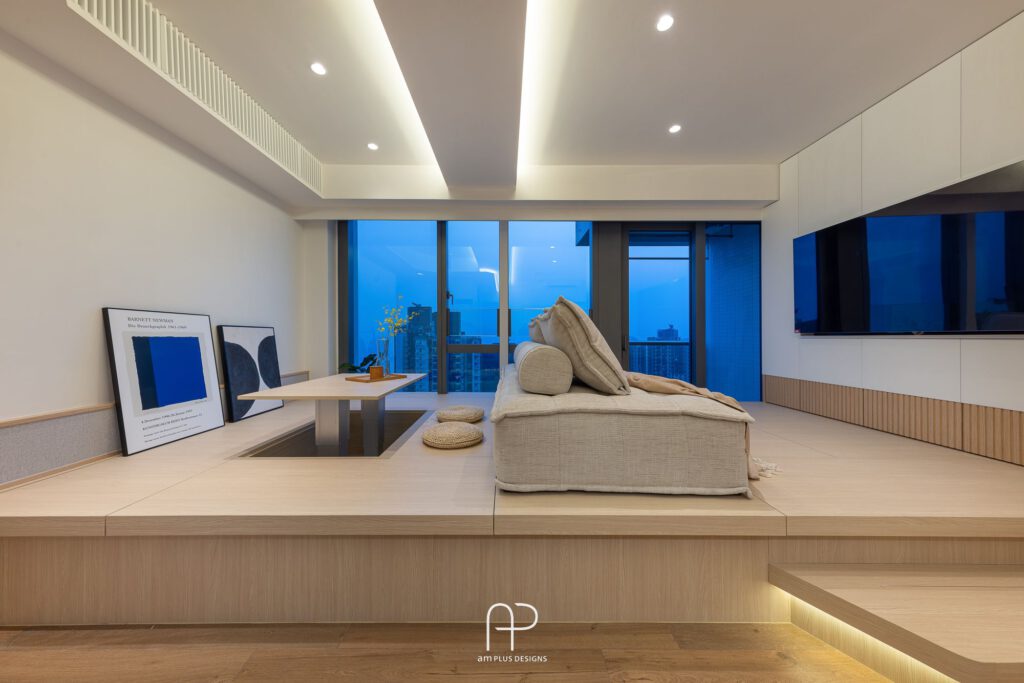 這次 am Plus 全屋空間掌握了日式設計核心,單位使用眾多傳統日式、自然、木質元素,並在造型、燈光、物料搭配上加入不同巧思,以有別以往的新式簡約日系風格,打造舒適居家空間。